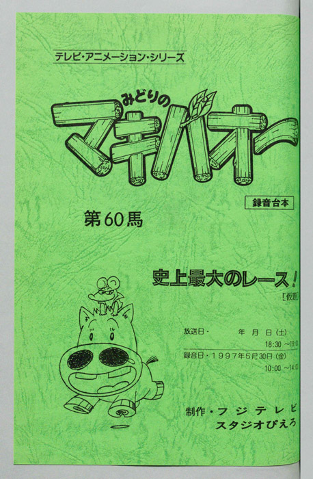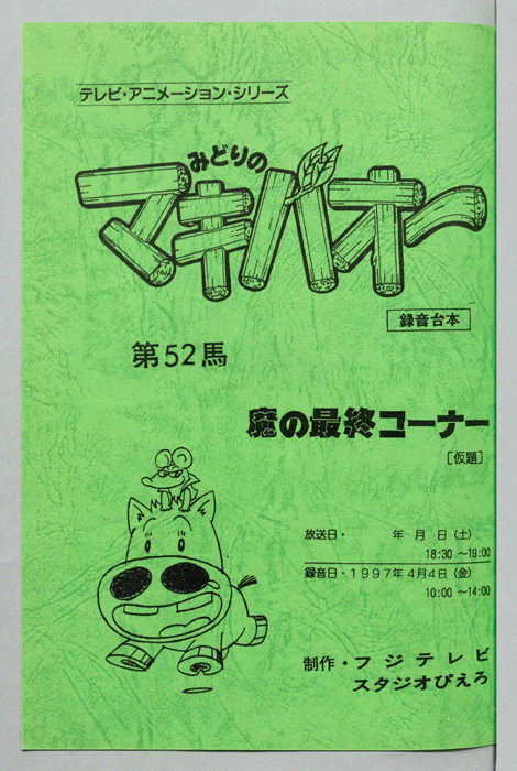 主な出演 : マゴワクチン)松本保典,(ベアナックル)長嶝高士,(フライドチキン)大川透,(ボス)池田勝,(ドナテロス)津村まこと,(ドバイ殿下)福田信昭,(ムハンマド)西尾徳,(嶋島)大川透,(ハンターA)福田信昭,(ハンターB)長嶝高士,(司会),(執事),(外【みどりのマキバオー】北海道の牧場『みどり牧場』の名馬「ミドリコ」から、まるでロバのような不思議な姿の馬「マキバオー」が生まれる。その後、みどり牧場の借金を返済する為、ミドリコが堀江牧場へ売られることになり、母
