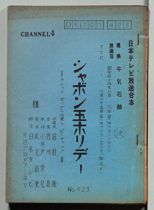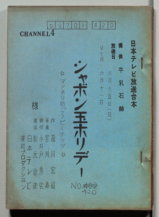五十嵐喜芳,トニー谷,宇治かほる,沢たまき,藤村有弘,伊藤素道とリリオ・リズム・エアーズ,(スタジオNo.1ダンサーズ)浦辺日佐男,小井戸秀宅,斉藤健,市川義礼,中北万里子,名倉加代子,今喜世,米倉栄子,橋本佐智子