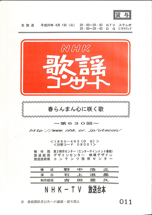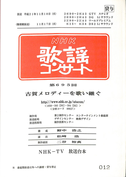 主な出演 : 秋川雅史,秋元順子,岡ゆう子