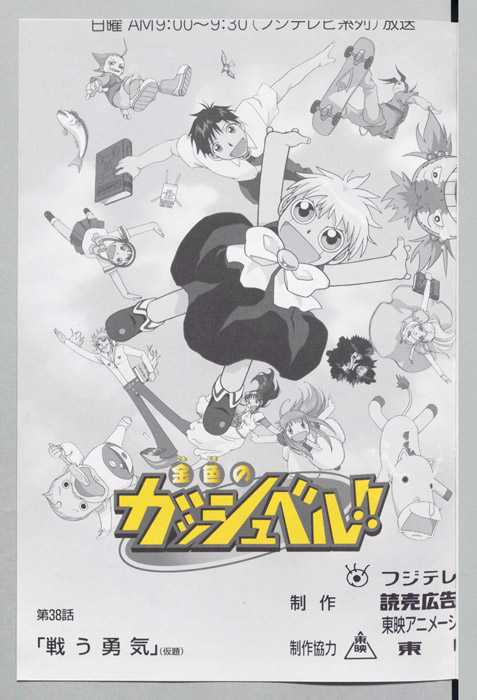 主な出演 : (ガッシュ・ベル)大谷育江,(高嶺清麿)桜井孝宏,(水野すずめ)秋谷智子,(ウマゴン)こおろぎさとみ,(ワイフ)寺田はるひ,(かまきりジョー)小嶋一成,(店長),(悪役)佐藤晴男,(ガードマン)一条和矢,(洋ナシちゃん)松来未祐,(店【金色のガッシュベル】 千年に一度行われる『魔界の王』を決める戦いに選ばれた百人の魔物の子供達、彼らは自身の内に秘めた力を引き出せる同じ心の形を持った人間のパートナーを探して、人間界で『魔本』の