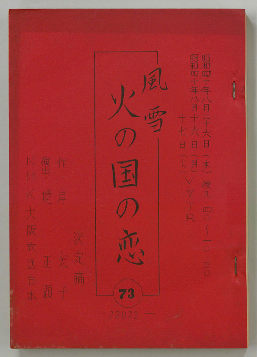 主な出演 : 尾上松緑,佐田啓二,北村和夫,佐伯徹,織田政雄,前沢廸夫,淡島千景,加藤道子,稲垣美穂子,(語り手)小沢栄太郎- 作家 : 佐々木守