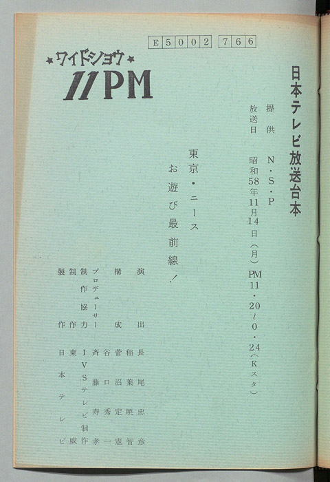主な出演 : 大橋巨泉,松岡きっこ,所ジョージ,三浦恵美里,コリーヌ・アシオーヌ,ジャン・ブリッソー,鈴木謙二,柳橋達生,関野寿,藤田佳の実,杉原淳とニューサラブレッズ,(ナレーター)エド山口