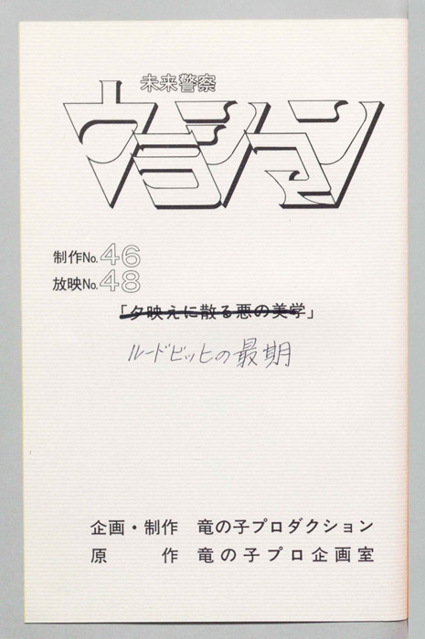 主な出演 : (リュウ)小林通孝,(クロード)神谷明,(ソフィア)横沢啓子,(権藤警部)大平透,(ミャー)勝生真沙子,(ルードビッヒ)塩沢兼人,(ミレーヌ)北浜晴子,(ジタンダ)田中真弓,(ウルフ)玄田哲章,(ベア)島香裕,(ホーク)立原淳平,(シ【未来警察ウラシマン】1983年のある台風の夜、ひとりの少年が『ウラシマ・エフェクト』と呼ばれる特殊な現象に巻き込まれ、2050年の未来へとタイムスリップしてしまう。タイムスリップの影響により過去の記憶を失い、代
