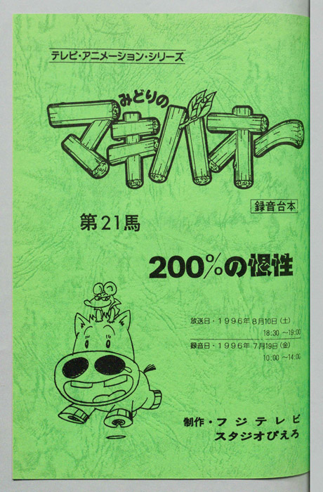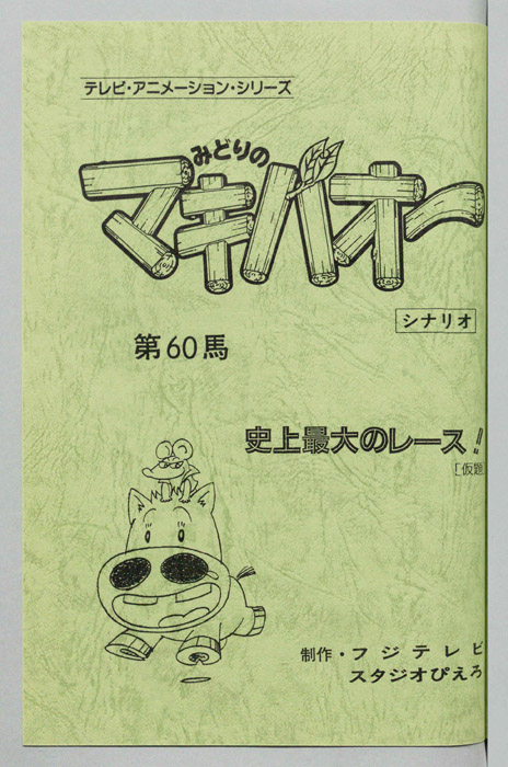 主な出演 : (うんこたれ蔵:ミドリマキバオー)犬山犬子,(チュウ兵衛)千葉繫,(飯富勝)高山みなみ,(飯富昌虎)飯塚昭三,(山本菅助)桜井敏治,(若ぞう:三枝友則)石田彰,(マキバコ)大谷育江,(胸尻諸美)深雪さなえ,(ドナテロス)津村まこと,(ム【みどりのマキバオー】北海道の牧場『みどり牧場』の名馬「ミドリコ」から、まるでロバのような不思議な姿の馬「マキバオー」が生まれる。その後、みどり牧場の借金を返済する為、ミドリコが堀江牧場へ売られることになり、母