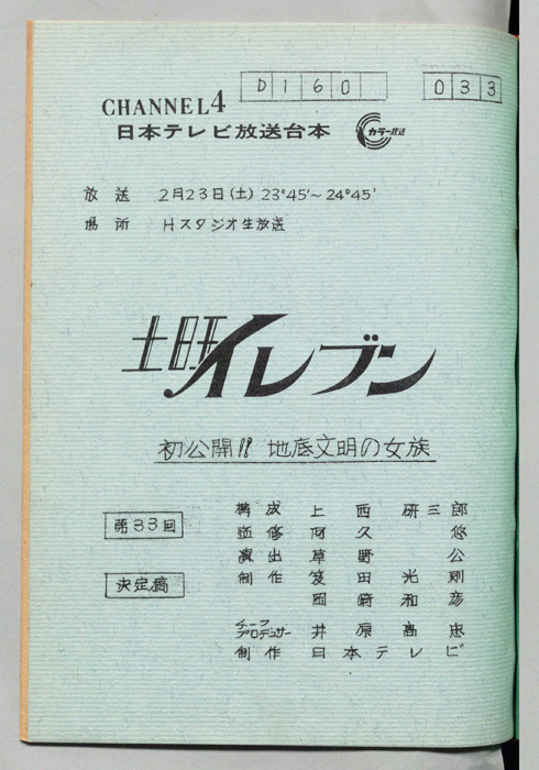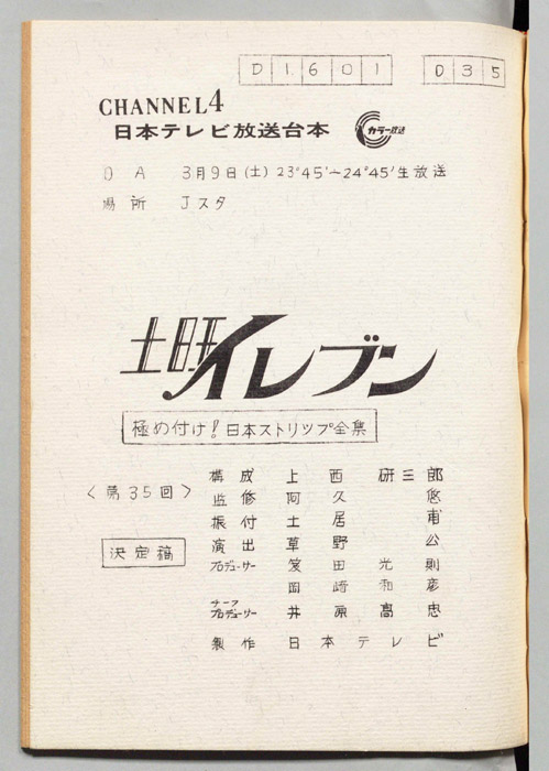 主な出演 : 金井克子,由美かおる,原田糸子,奈美悦子,(ゲスト)丹波哲郎,東京ぼん太- 作家 : 西野皓三,松本重美,阿久悠