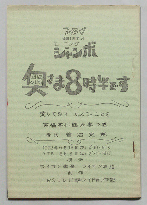 主な出演 : [フランキー堺,森川信,ミヤコ蝶々,奈美悦子,左時枝,辻由美子,城野ゆき,森田健作,笑福亭仁鶴,左とん平,ストレート・コンビ]