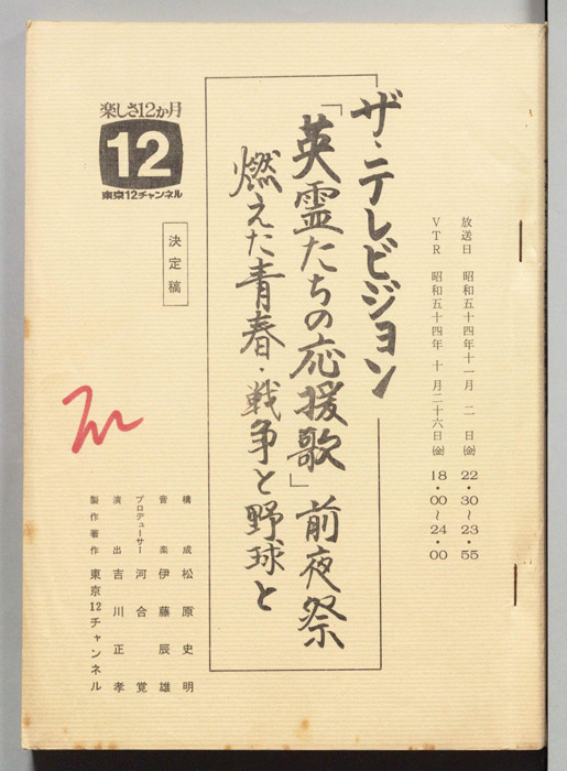 主な出演 : (手書き)高倉,藤,石山,大木,那須,金子,長門,渡辺,天津,南田,香川