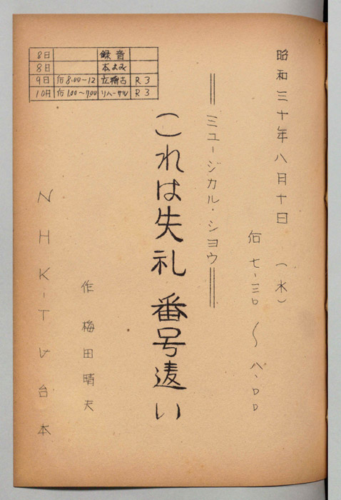 主な出演 : [一龍斎貞鳳,三木のり平,三遊亭小金馬,藤村有弘,福田公子,山東昭子,笠置シヅ子,織本順吉]