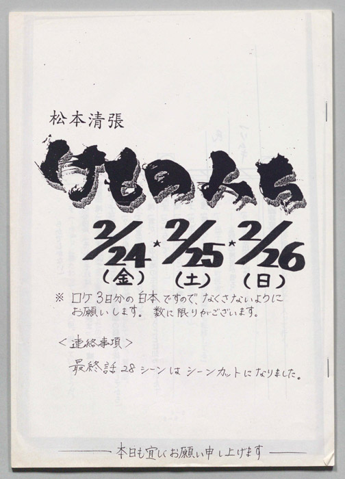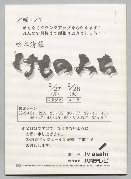 主な出演 : 若村麻由美,米倉涼子,平幹二朗,東ちづる,安田美沙子,星野真里,坂本三成,長谷川朝晴,早川純一,小倉馨,児玉謙次,佐藤浩市/(2/21 衣裳合わせ)田村高廣