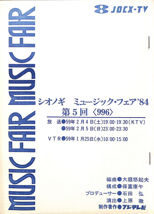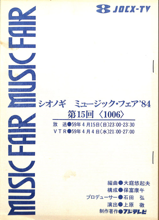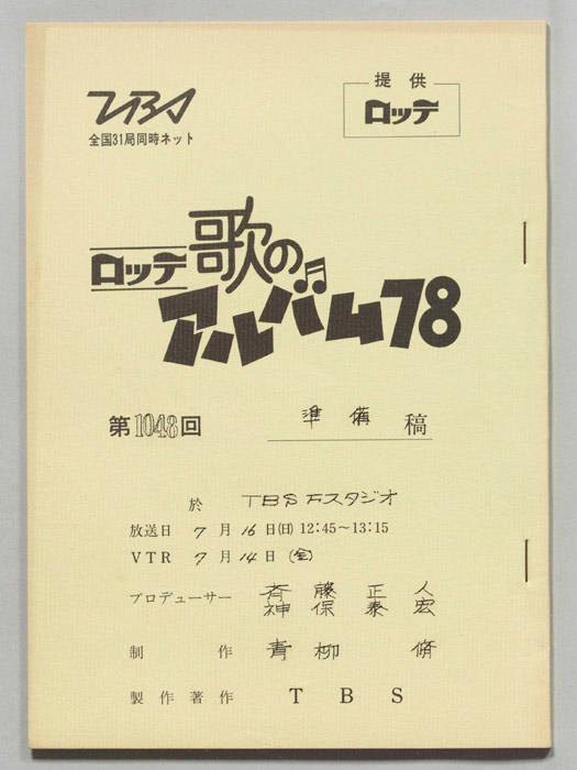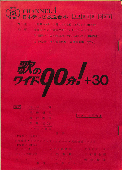 主な出演 : 大川栄策,田原俊彦,中森明菜,細川たかし,松田聖子,都はるみ,三笠優子,佳山明生,日野美歌,五木ひろし,西城秀樹,沢田研二,八代亜紀,いとう麻衣子,井上杏美,岩井小百合,大沢逸美,小野さとる,織江舞子,木元ゆうこ,桑田靖子,小久保尚美,佐