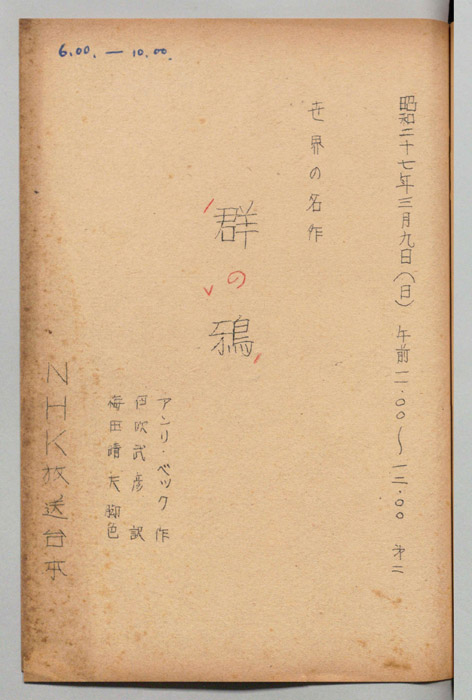 主な出演 : [折原啓子,山内明,清水将夫,細川ちか子,宇野重吉,高杉早苗,加藤嘉,北林谷栄,滝沢修,沢村晶子,高野由美,殿山泰司,千藤信男,塩谷達夫,多々良純,由利みさを]