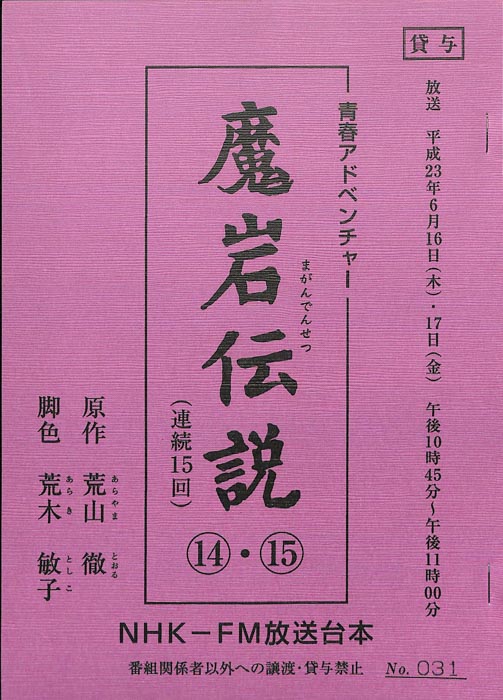 主な出演 : 細見大輔,加藤忍,山路和弘,吉見一豊,大友龍三郎,入野自由,丸尾聡,華村りこ,江良潤,建蔵,山本竜二,金子貴俊,柴田義之,石川英郎,山内慶太郎,高木トモユキ,酒向芳,須藤真澄,帯金ゆかり,中村梅雀- 作家 : 荒木敏子