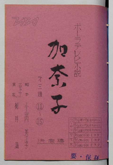 主な出演 : 藤巳恵子,緋多景子,大坪日出代,大井潤,菊地晴美,杉本たか子,原彩子,上田茂太郎,加納英二郎,高橋博(朗読)