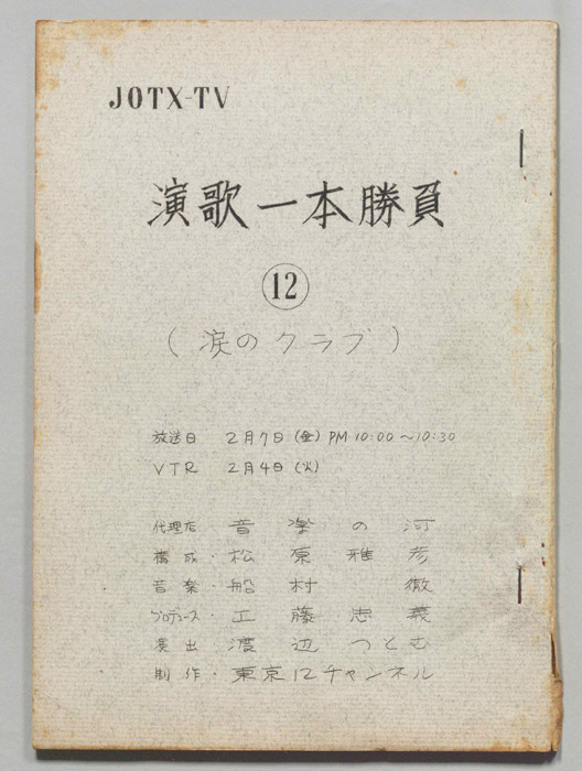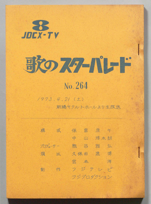 主な出演 : 由美かおる,金井克子,原田糸子,水前寺清子,笹みどり,美川憲一,青山ミチ,水戸浩二,渡哲也,東京ユニオンオーケストラ,ザ・フラッシャーズ,ザ・ウィンキーズ,ザ・ボンネッツ,小野栄一- 作家 : 西野浩三,[川崎真]