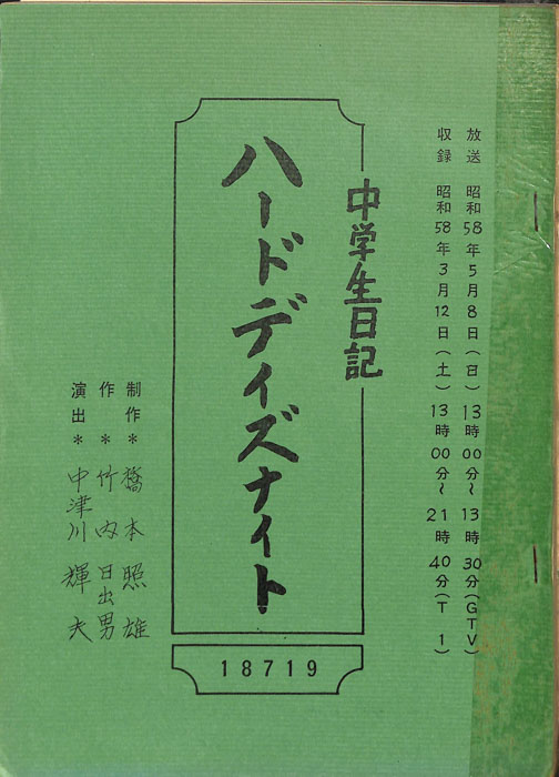 主な出演 : 内河朱美子,伍籐かずよし,茅島成美【中学生日記】 中学生日記は1972年から2012年3月まで長きに渡って放送された学園ドラマである。1962年4月から放送された「中学生次郎」という番組を前身とし、何度か番組名を変更しつつ本ドラマに至る。最