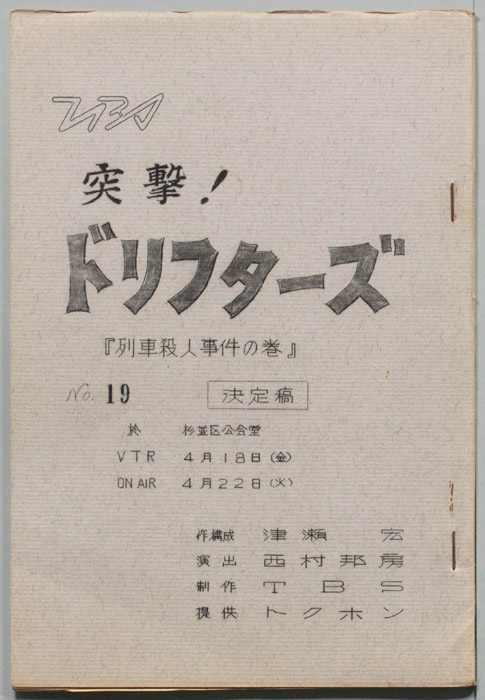 主な出演 : 柴田恭兵,金子信雄,沖直美,かたせ梨乃,荒井注,高野嗣郎,趙方豪,柳有,おかち以蔵,瀬川新蔵- 作家 : 長坂秀佳