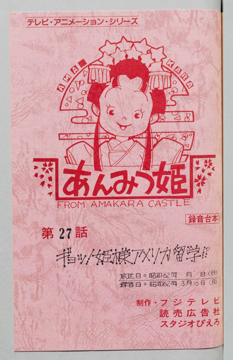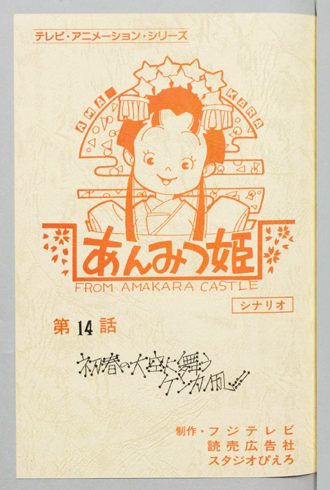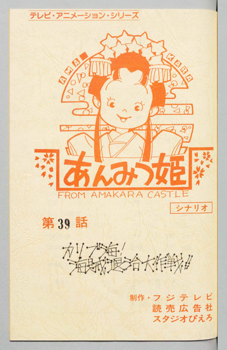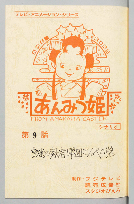 主な出演 : べ川)八奈見乗児,(おはぎの局)鈴木れい子,(スフインクス)稲葉実,(彦星)松尾貴司,(牛)菅原淳一,(織姫)山田栄子,(団長)富山敬]【あんみつ姫】あまから城のお姫様「あんみつ姫」は、器量がよく優しい性格をしているが、やんちゃでおてんばなところがあり、その好奇心から城の中だけでなく、城下町でも自由奔放な行動をしては周囲の人々を困らせていた。ア