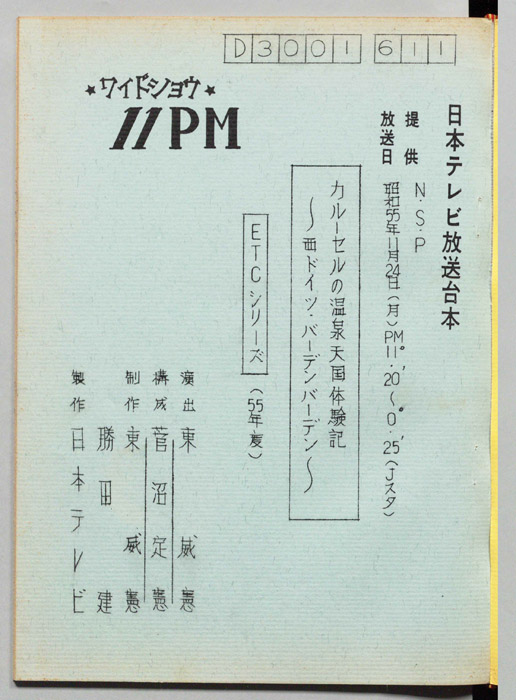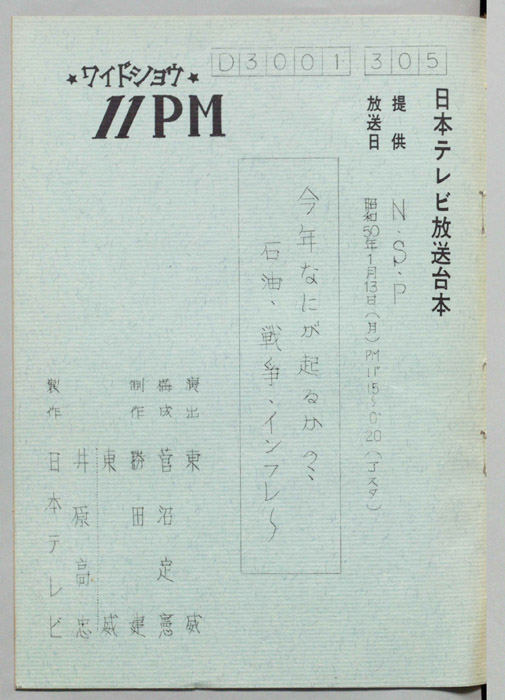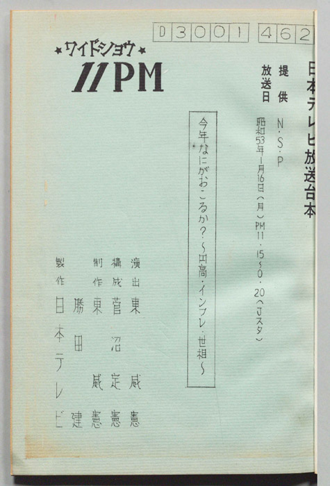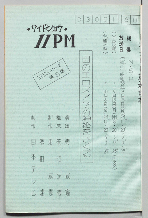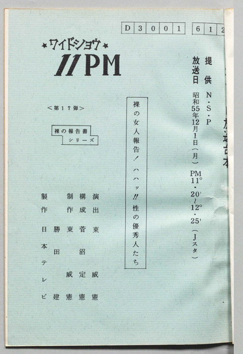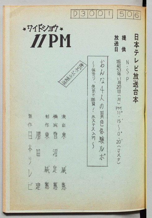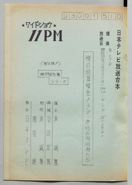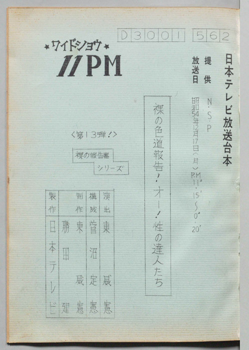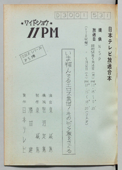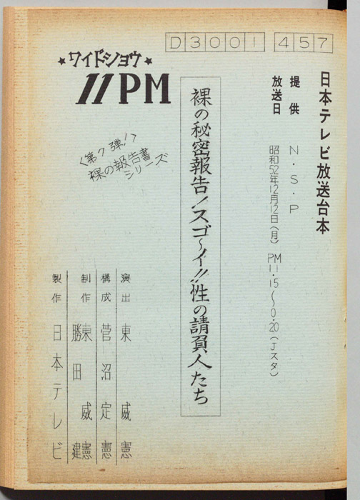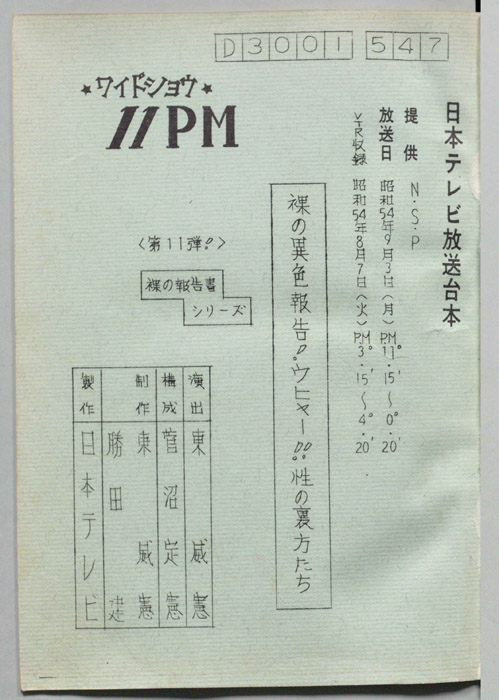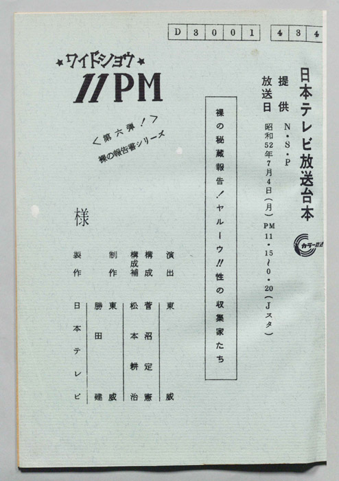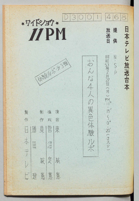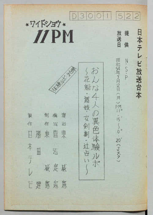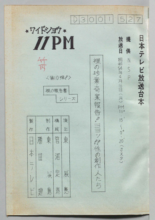 主な出演 : 大橋巨泉,松岡きっこ,カルーセル麻紀,清水節子,野平ゆき,久里洋二,ナンシー・チェニー