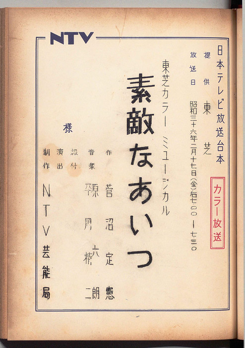 主な出演 : (ホスト)長門裕之,(ホステス)南田洋子,(出演)江利チエミ,レイ・アンソニーとその楽団,(演奏)新室内