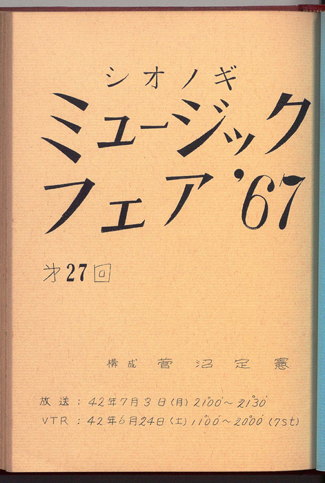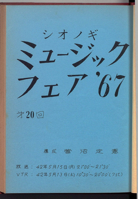 主な出演 : (ホスト)長門裕之,(ホステス)南田洋子,(出演)高島忠夫,園まり,ニニ・ロッソ,(演奏)宮間利之とニュー・ハード,新室内