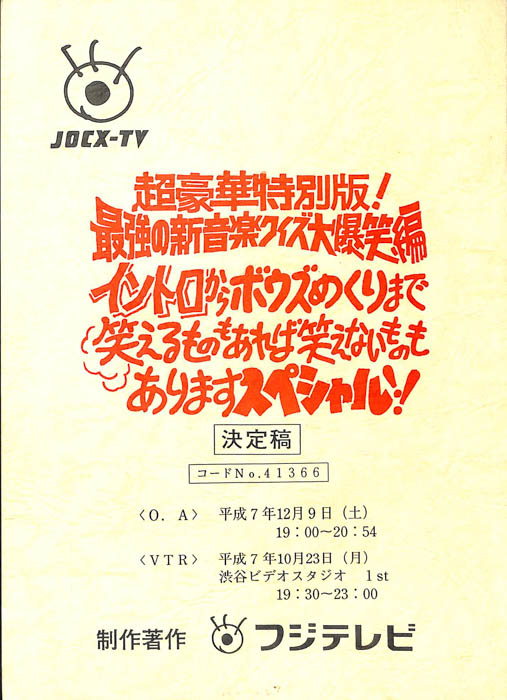 主な出演 : 中山秀征,松本明子,西田ひかる,松村邦洋,細川ふみえ,佐竹雅昭,出川哲朗,有賀さつき,川合俊一,マルシア,にしきのあきら,菅野美穂,ダチョウ倶楽部