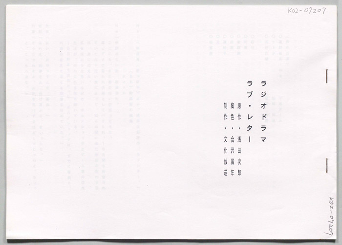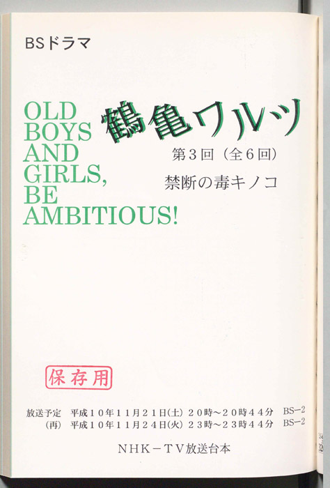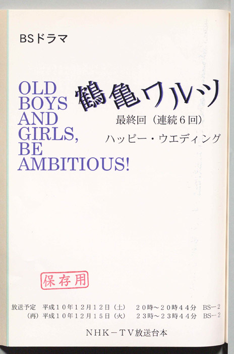 主な出演 : 杉浦直樹,鈴木砂羽,筒井道隆,小橋めぐみ,マルティン・ラミレス,三上大和,岸田今日子,(以下書き)鈴木砂羽,小橋めぐみ,(以下は手書きで消去)大塚寧々,菅野美穂