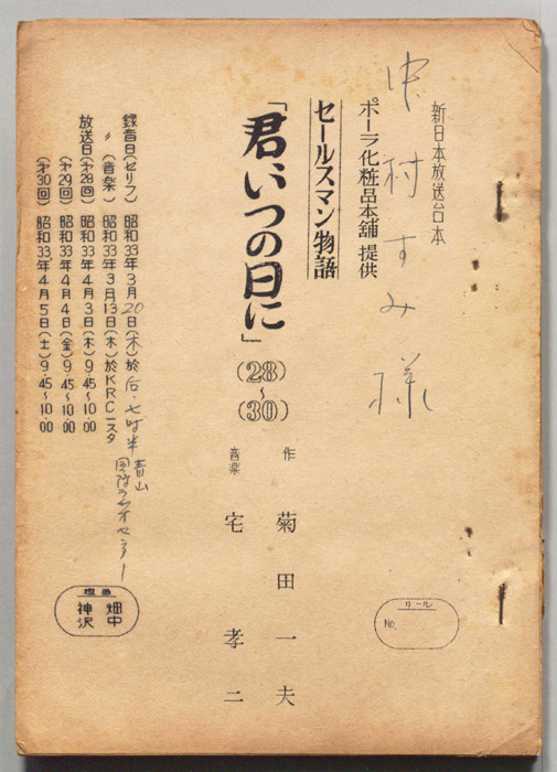 主な出演 : 飛鳥みさ子,柳永二郎,夏川静江,旗持貴佐夫,斉藤達夫,杉葉子,三浦光子,清水元,清水一郎,松下猛夫,美川章子- 作家 : 菊田一夫