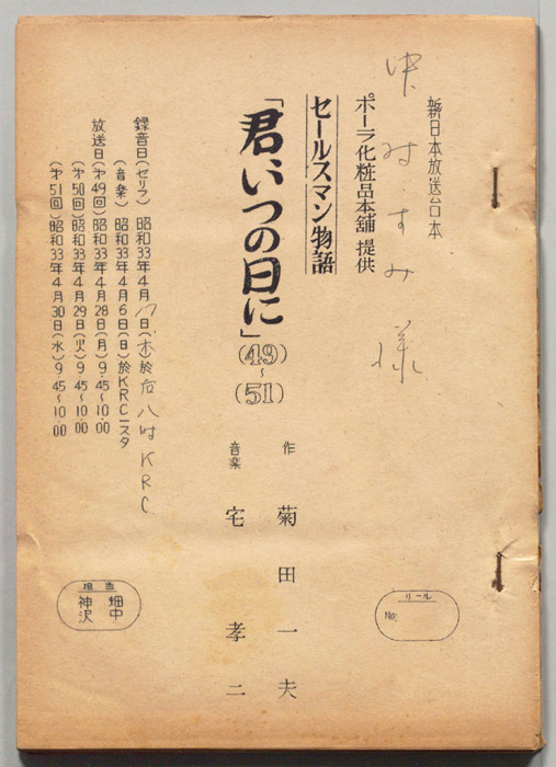 主な出演 : 大塚国夫,飛鳥みさ子,夏川静江,有田稔,斉藤達雄,旗持貴佐夫,塩沢登代路,矢野宣,英百合子,夏川かおる,三浦光子,万里陽子,梅屋かおる,(解説)池谷アナ- 作家 : 菊田一夫