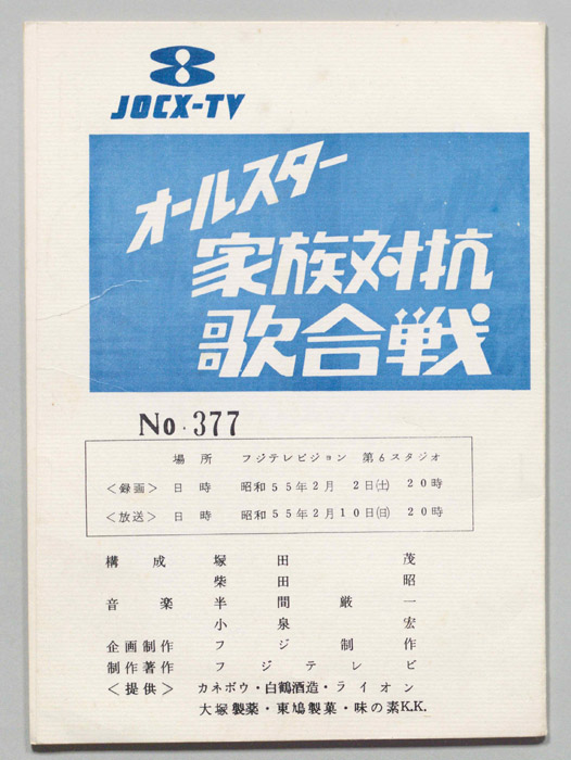 主な出演 : 水の江滝子,菅原洋一,浜木綿子,井上純一,土田悦子,杉田かおる,伊藤秀和,萩本欽一,清水由貴子,[林ゆたか,山口百恵]