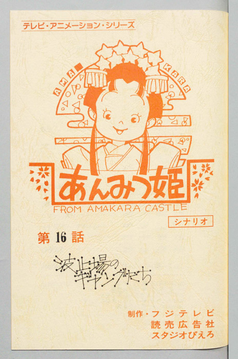 主な出演 : 村弘一,(かのこの母)さとうあい,(組長)藤本譲,(男),(組員たち)]【あんみつ姫】あまから城のお姫様「あんみつ姫」は、器量がよく優しい性格をしているが、やんちゃでおてんばなところがあり、その好奇心から城の中だけでなく、城下町でも自由奔放な行動をしては周囲の人々を困らせていた。ア