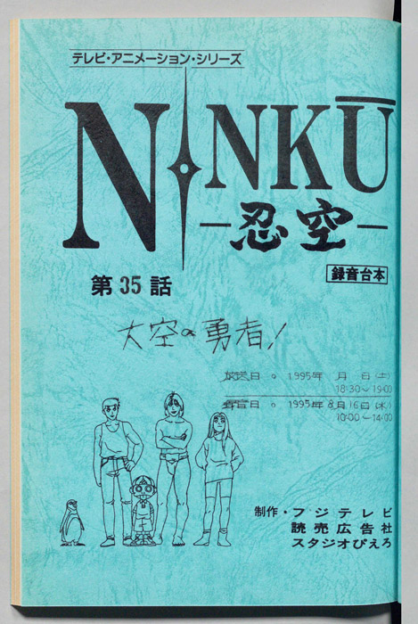 主な出演 : (風助)松本梨香,(橙次)小杉十郎太,(藍眺)真殿光昭,(ヒロユキ)鈴木勝美,(里穂子)林原めぐみ,(赤玉)藤本譲,(桃川)大滝進矢,(青柳)千田光男,(緑川)秋元羊介,(親父)峰恵研,(女),(手下:C125),(子分:C142),(チンピラたち)【NINKU―忍空―】架空史EDO歴、帝国復活を狙う将軍家と民主勢力による大きな戦乱があった。この大戦の最中、わずか数十名の部隊で帝国軍を壊滅寸前にまで追い詰めた集団があった。その名は「忍空隊」か