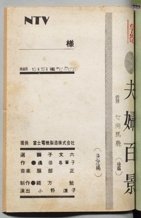 主な出演 : 加東大介,内藤洋子,山田五十鈴,三井弘次,小笠原章二郎,藤波洸子,梅屋かほる,和田弘子,石田茂樹,可合一光,(ナレーター)山内雅人- 作家 : 菜川作太郎,(監修)菊田一夫