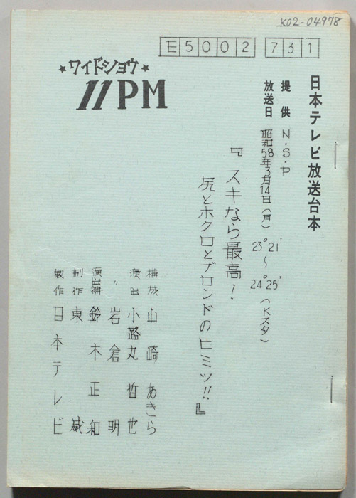 主な出演 : 大橋巨泉,松岡きっこ,カルーセル麻紀,赤塚不二夫,福留功男,少女M,中村京子,玉井敬友,榎本三恵子,あつみ光世,田中彰,早稲田大学桃色本愛読会(山口雅之他4名),藤田佳の実,杉原淳とニューサラブレッズ,(ナレーター)福留功男