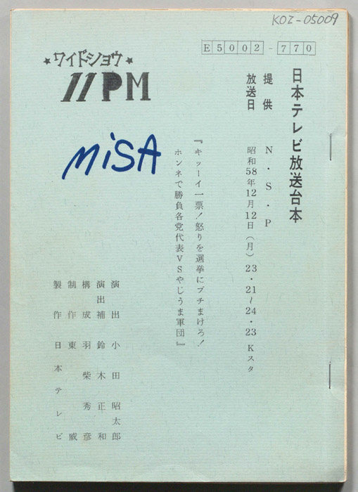 主な出演 : 大橋巨泉,松岡きっこ,いそのえいたろう,藤田佳の実,久里洋二,杉原淳とニュー・サラブレッズ,豊原路子,永田哲朗,渡辺千代,東郷健,武藤隆夫,三木のり平,片寄京子,丸尾長顕,松尾久枝,吉村千万子,(ナレーター)福留功男