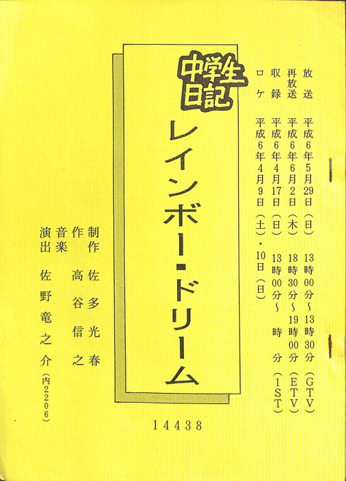 主な出演 : 今井美希子,藤田宗久,木瓜みらい【中学生日記】 中学生日記は1972年から2012年3月まで長きに渡って放送された学園ドラマである。1962年4月から放送された「中学生次郎」という番組を前身とし、何度か番組名を変更しつつ本ドラマに至る。最