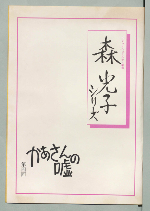 主な出演 : 南条豊,川崎麻世,佐藤賢司,藤谷美和子,米村知晃,太田裕子,山田芳一,曾田博彰,藤岡重慶,今村広則,(以下手書き)柳生博,斎藤こづえ,堀井永子,倍賞佐知子- 作家 : 村山庄三