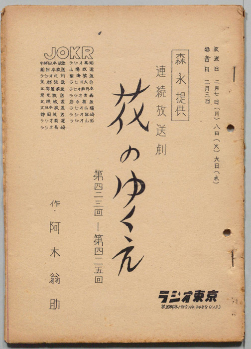 主な出演 : 石田昭子,綏片達雄,春日俊二,林佐知子,西口紀代子,中村すみ,浅野進治郎,南條秋子,松野日出夫,(語り手)高橋昌也,
