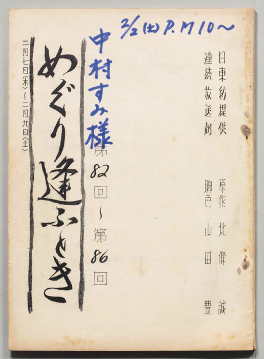 主な出演 : 第209回/万里陽子,西口紀代子,(語り手)藤野節子,第210回/西口紀代子,小峰千代子,(語り手)藤野節子