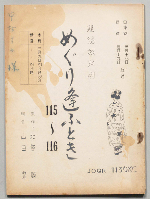 主な出演 : 第118回/小山田宗徳,中村有里,万里陽子,西口紀代子,小峰千代子,城達也,松宮五郎,湯浅智津子,(語り手)田中明夫,第119回/小山田宗徳,万里陽子,西口紀代子,小峰千代子,遠藤ハル,勝田久,日岸喜美子,松宮五郎,城達也,湯浅智津子,河