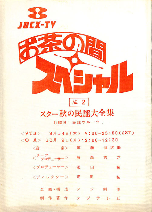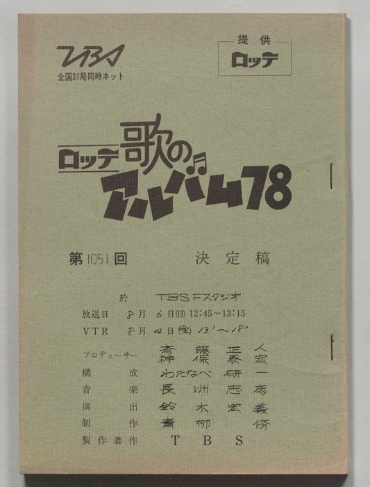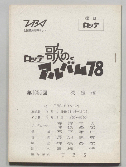 主な出演 : 由美かおる,横山プリンとアラモード:横山プリン,高井ギャラ,松原秀樹,徳光和夫:NTV,(踊り)ザ・ステッカーズ,(演奏)高橋達也と東京ユニオン,(ゲストスター)西城秀樹,野村真樹,佳川ヨコ- 作家 : 西野皓三,岩城未知男,尾上たかし,章田宙也,パジャマ党