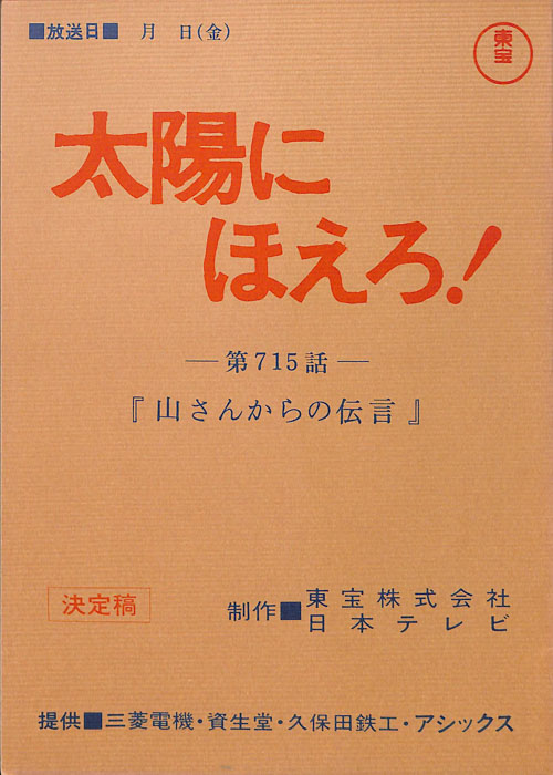 主な出演 : 渡哲也,舘ひろし,勝野洋,松本伊代,太川陽介,西山浩司,峰竜太,御木裕,山口弘和,竹田高利,多岐川裕美,- 作家 : 新井光
