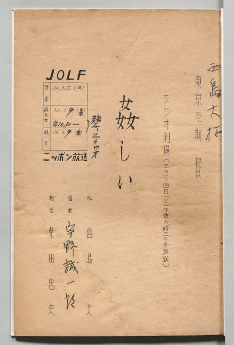 主な出演 : 勝呂誉,島かおり,山本豊三,大空眞弓,松村達雄,本郷秀雄,三遊亭円生,沢村貞子,石黒達也,山東昭子,柴田秀晴[柴田秀勝],石間健史,月森一蔵- 作家 : 西島大