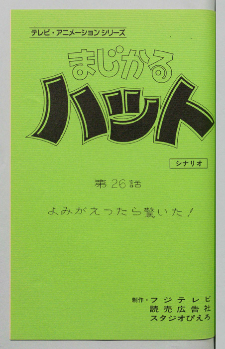 主な出演 : (ハット)伊倉一恵,(スピン)松井菜桜子,(タウ爺さん)八奈見乗児,(ホットケン)鈴木富子,(アレフ王)笹岡繫蔵,(コワル)鈴木みえ,(ドグー)茶風林,(ジャーク)内海賢二,(竜),(おまわり)西村智博,(赤ん坊)【まじかるハット】遥か昔に存在した伝説の勇者「まじかるハット」は地上を脅かす魔界に棲む魔王に立ち向かった。「魔法的超能力」を使いこなす勇者と魔王は激闘を繰り広げ、対決の末に魔王を勇者は異世界の島に魔王を封印して世界に平和をもたらした。そ