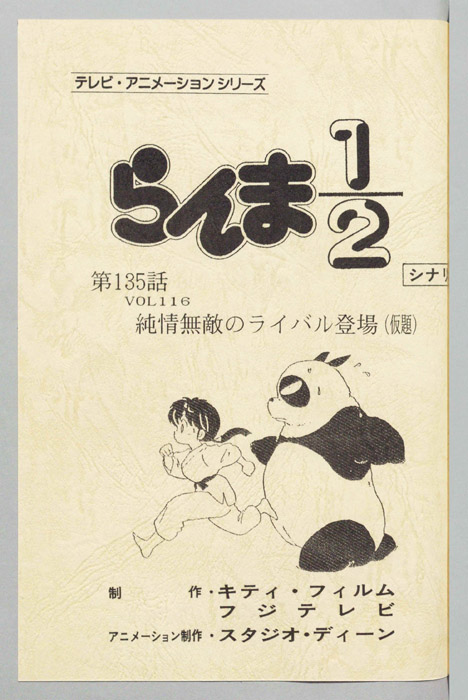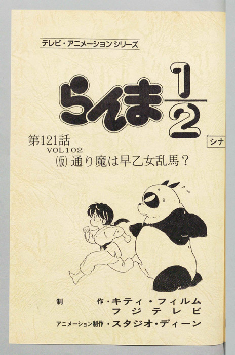 主な出演 : [早乙女乱馬(男):山口勝平,早乙女らんま(女):林原めぐみ,天道あかね:日髙のり子,五寸釘(=通り魔):二又一成,さゆり:亀井芳子,あさみ:小林優子,ゆか:豊島まさみ,ひろし:辻谷耕史,大介:子安武人,古典の先生,その他風林館高校の男子生徒・女子生徒]【らんま1/2】無差別格闘家「早乙女玄馬」の息子「早乙女乱馬」は幼少の頃より無差別格闘流の修行に励みながら、中国へと渡る。だが、そこで父親と共に悲劇的な伝説が多く伝わる修行場「呪泉郷」で稽古中に不思議な泉に落ちたことにより、乱