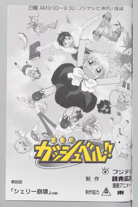 主な出演 : (ガッシュ・ベル)大谷育江,(高嶺清麿)桜井孝宏,(水野すずめ)秋谷智子,(詞音)豊嶋真千子,(ニャルラト)ゆきじ,(先生)山口健,(グリサ)肝付兼太,(クラスメート達),(ウマゴン)こおろぎさとみ,(ナオミ)溝脇しほみ【金色のガッシュベル】 千年に一度行われる『魔界の王』を決める戦いに選ばれた百人の魔物の子供達、彼らは自身の内に秘めた力を引き出せる同じ心の形を持った人間のパートナーを探して、人間界で『魔本』の