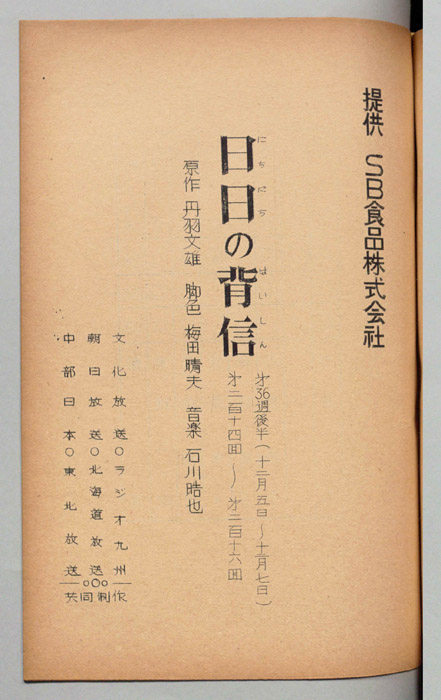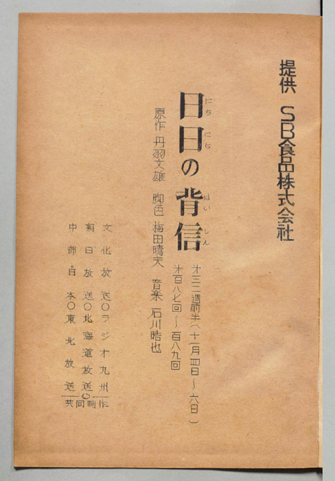 - 放送局 : 文化放送,朝日放送,中部日本,ラジオ九州,北海道放送,東北放送