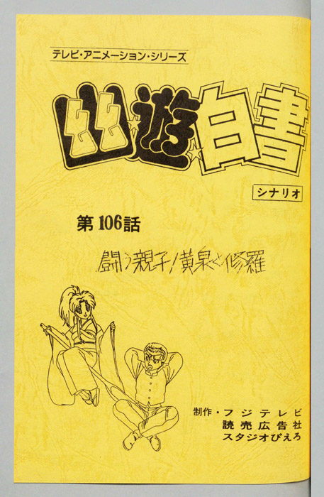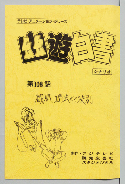 主な出演 : (浦飯幽助)佐々木望,(蔵馬)緒方恵美,(飛影)檜山修之,(コエンマ)田中真弓,(ぼたん)深雪さなえ,(酎)若本規夫,(鈴駒)近藤玲子,(鈴木)曽我部和恭,(凍矢)松本保典,(陣)山口勝平,(時雨)谷口節,(黄泉)江原正士,(軀)高