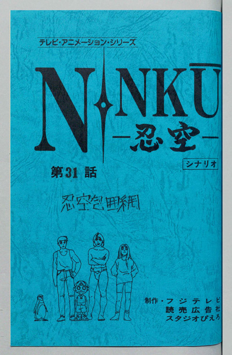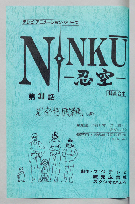 主な出演 : (風助)松本梨香,(橙次)小杉十郎太,(藍眺)真殿光昭,(ヒロユキ・青年)鈴木勝美,(里穂子)林原めぐみ,(爺さん)藤本譲,(ワタル)近藤玲子,(夫:ワタルの父・Na)大滝進矢,(妻:ワタルの母)深雪さなえ,(亘)近藤玲子,(村人Ⓐ)石【NINKU―忍空―】架空史EDO歴、帝国復活を狙う将軍家と民主勢力による大きな戦乱があった。この大戦の最中、わずか数十名の部隊で帝国軍を壊滅寸前にまで追い詰めた集団があった。その名は「忍空隊」か