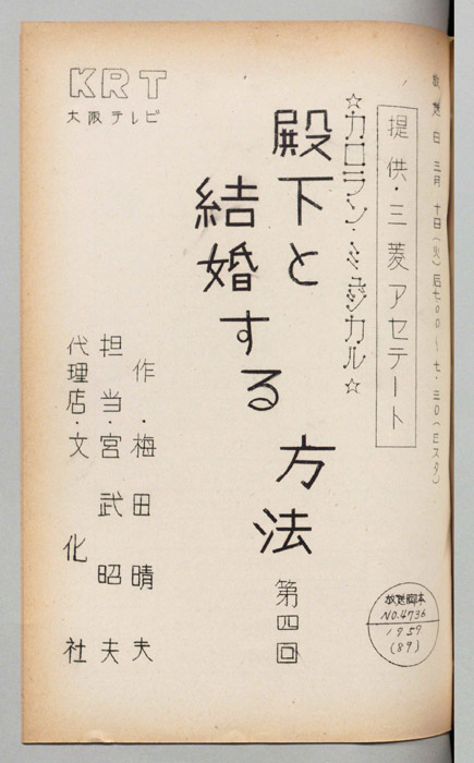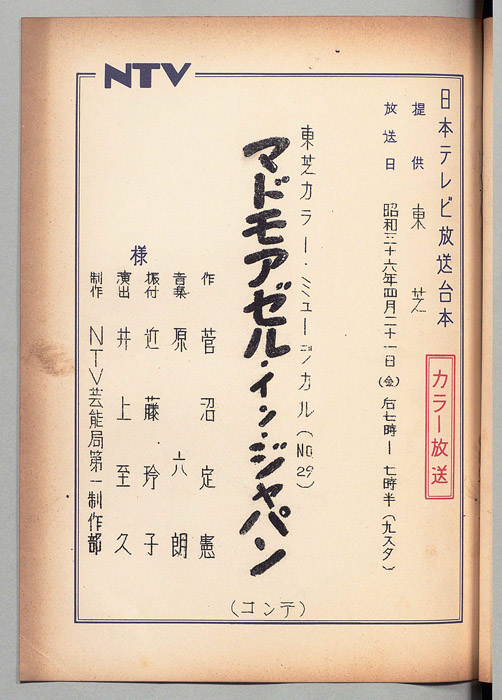 主な出演 : 中原美紗緒,宮地晴子,三木鮎郎,万里陽子,旗照夫,森肇,宇治かおる,川路立美,近藤玲子バレエ団