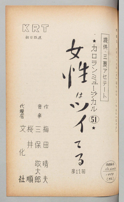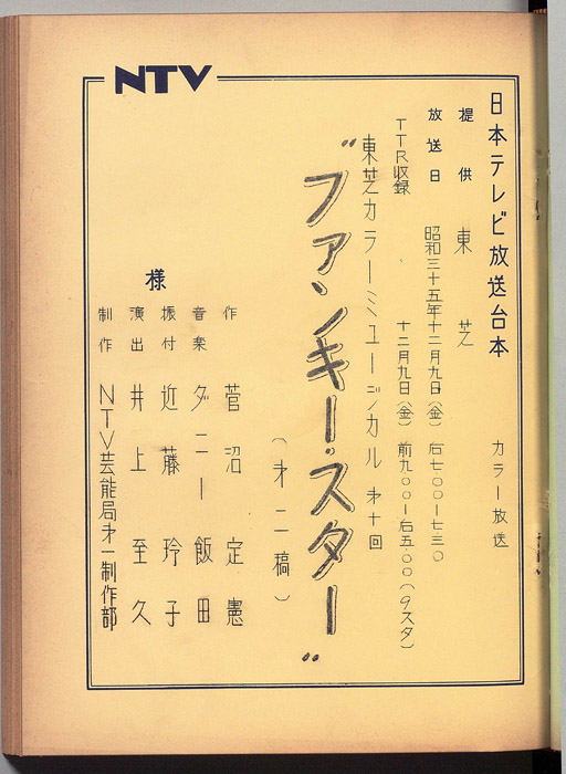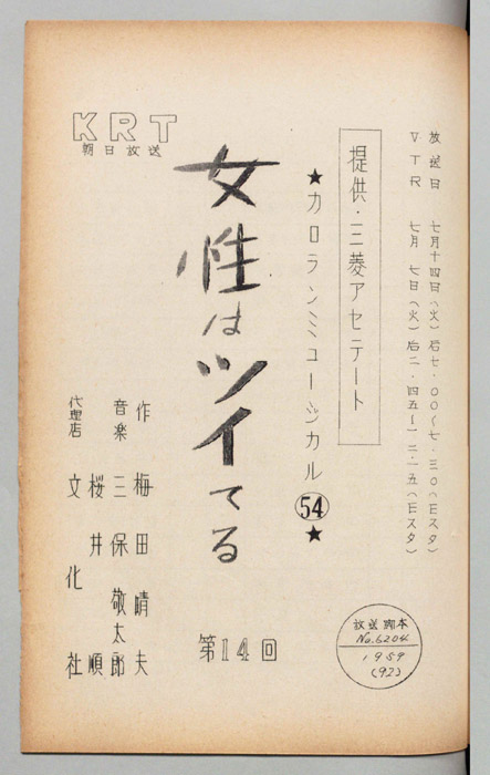 主な出演 : ペギー葉山,旗照夫,島田妙子,谷節子,牟田悌三,横浜シゲミ,小薬俶子,守屋園子,(踊り)近藤玲子バレエ団